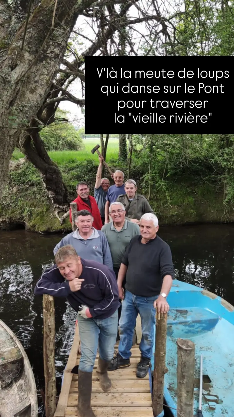 Opération construction d'un Pont éphémère pour franchir "La Vieille Rivière" sur le site de La Corderie pour les artistes Trailers du 26 et 42 kilomètres.